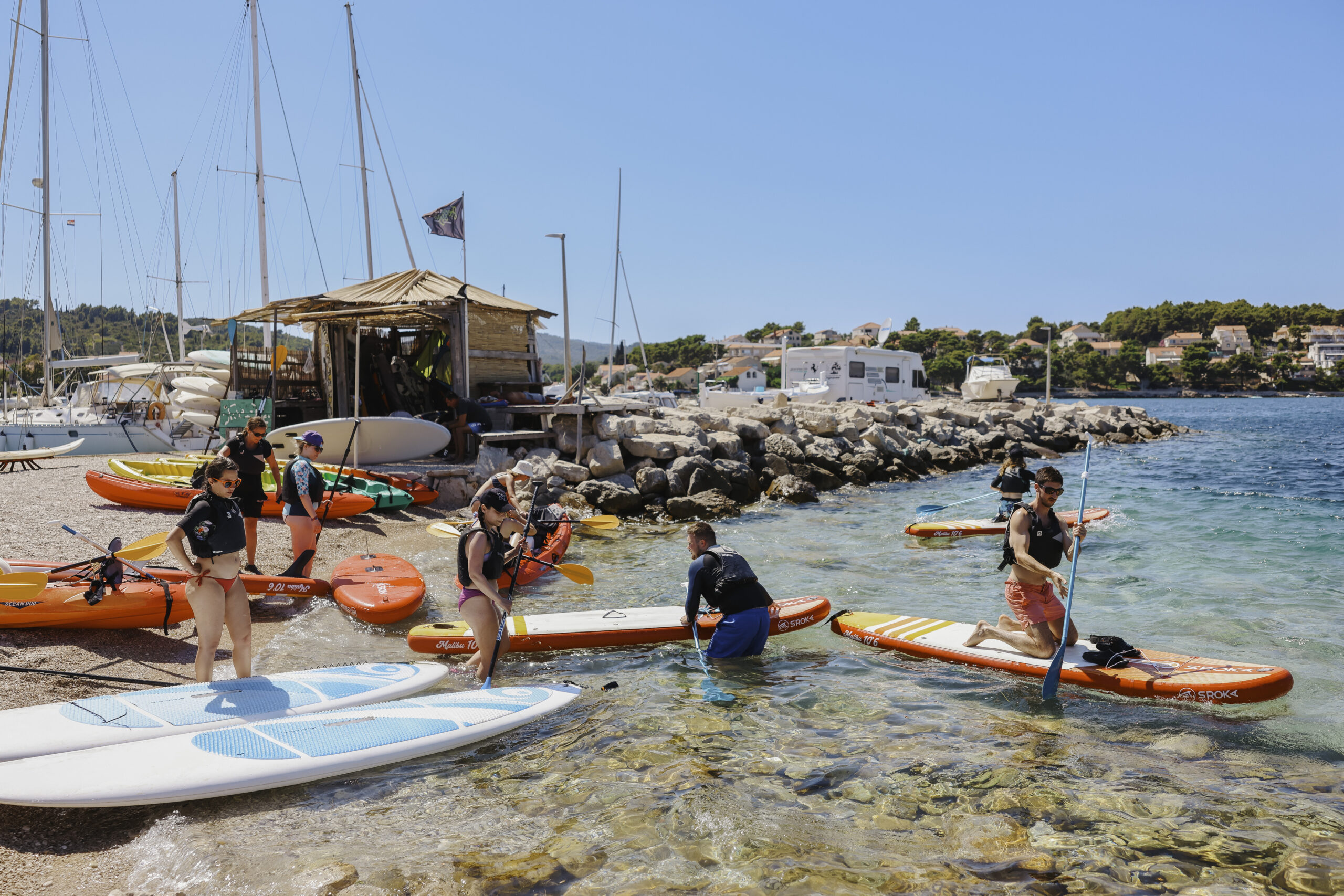 Krenite vlastitim tempom po kristalno čistim vodama, otkrijte skrivene uvale i divite se zadivljujućim krajolicima. Bilo da tražite miran bijeg ili uzbuđenje valova, stand-up paddleboarding vam pruža potpunu slobodu. Naši vodiči, strastveni ljubitelji prirode i mora, odvest će vas do neotkrivenih mjesta i podijeliti svoja omiljena mjesta s vama. Bilo da ste početnik ili iskusni, ovo je savršena prilika za doživjeti autentičnu avanturu koja kombinira opuštanje i otkrivanje.